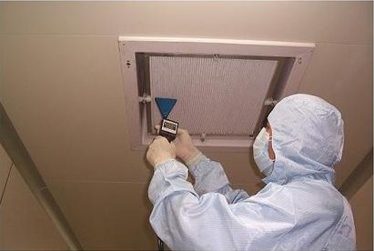 对于单向流洁净室,取离高效过滤器0.3m 垂直于气流处的截面作为采样截面,截面上测点间距不宜大于0.6m,测点数不应少于5点,所有读数的算术平均值作为平均风速。