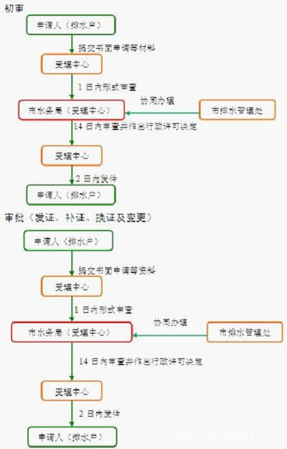 1.日排水量1000立方米以上(含1000立方米)的申请项目,由受理中心于10日内预审并提出初步意见报市水务局;局水资源处于10日内对申请项目进行审查并拟办行政许可批件;